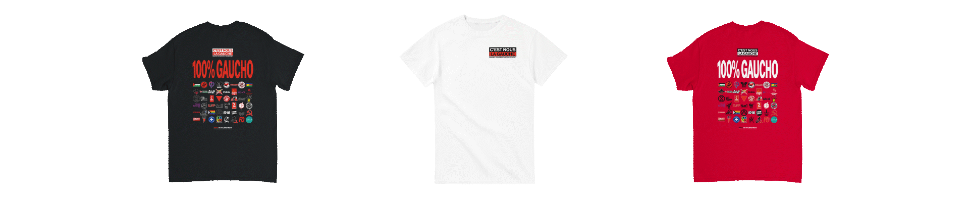 Je ne gagne pas d’argent sur le t-shirt 100% Gaucho. La production d’un t-shirt me coûte 19,14 euros, et je récupère 19,45 euros lors d’une vente normale. Les 30 centimes restants servent à financer l’hébergement du site.